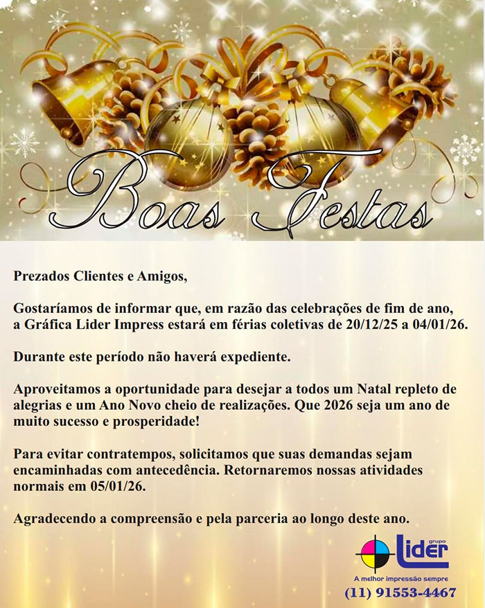 A Lider Impress, uma empresa destinada a suprir as necessidades de seus clientes, conta hoje com a experiência adquira desde 1997.